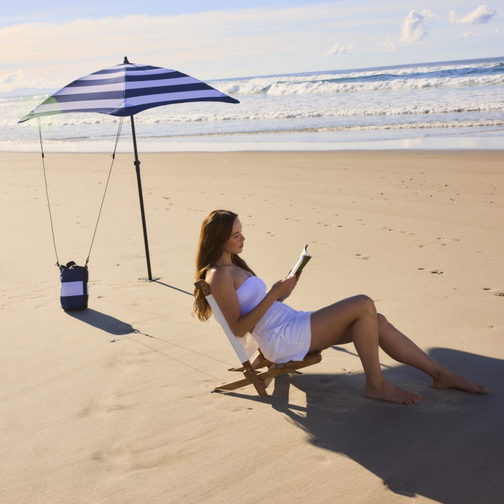 The BLUNT Beach Umbrella canopy is UPF 50+, blocking 99% of UV rays and comes with a convenient carry bag, a tilting canopy and a Sand Anchor Kit featuring an anchor, mallet, sandbag and lanyards for extra stability when conditions call for it, meaning you can stay shaded all day long.